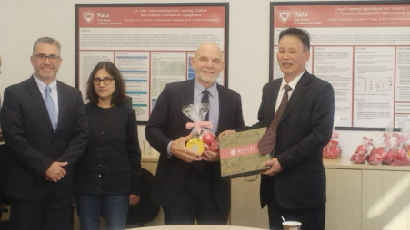 10月30日,代表团前往纽约叶史瓦大学访问,与该校董事长,副教务长兼经理Paul Russo,卡兹科学与健康公司教授王洪刚等进行了会谈,双方董事长相互介绍了各自公司的基本情况。王洪刚教授及其团队成员介绍了该团队在人工智能、图像识别、医疗服务等研究方向的主要成果。双方就暑期游学、公司产品、教师科研合作等方面进行了会谈。两校领导对双方校际联合技术创新、科研合作达成了共识,同时表示将大力推进暑期游学、公司产品等方面的合作。