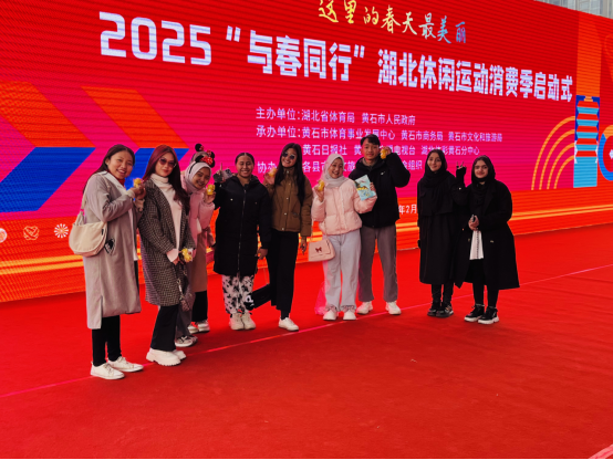 2月12日元宵佳节,2025“与春同行”湖北休闲运动消费季在黄石市人民广场启动,热闹非凡的体育庙会也在此举行。威廉希尔williamhill学子们在公司党总支部书记郭淑英的带领下前往参观体验,在欢乐的氛围中沉浸式感受非遗文化与体育活动交织的独特魅力,师生一起逛体育庙会,度过喜庆祥和的元宵佳节!