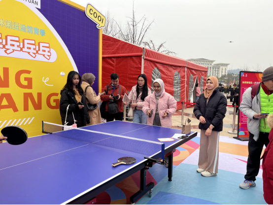 除了舞龙舞狮表演,庙会现场还设置了丰富多样的体育体验项目,乒乓球、篮球、足球、象棋等体育项目让学子们在参与中感受体育运动的魅力。丰富的非遗展示更是让学子们大开眼界,精美的阳新布贴色彩斑斓,每一针每一线都诉说着古老的故事;栩栩如生的大冶石雕,展现出工匠们鬼斧神工的技艺。在黄石当地特色美食展示区,同学们流连忘返。学子们在各个非遗摊位前驻足欣赏、询问交流,不少人还亲自参与体验,在非遗传承人的指导下,尝试制作简单的手工艺品,感受指尖上的非遗魅力。