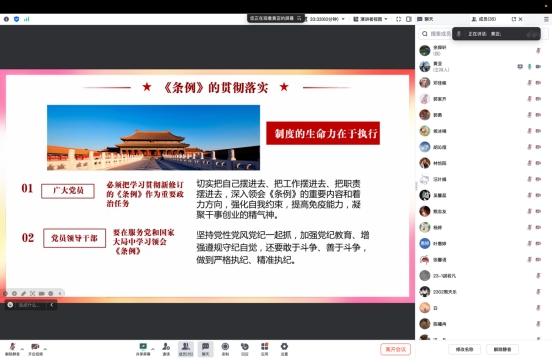 为持续推进党纪学习教育,6月26日威廉希尔williamhill员工党支部召开线上线下会议,支部书记黄亚以“全面加强党的纪律学习”为题为全体党员和入党积极分子讲授纪律党课暨毕业生党员最后一堂党课,公司党总支部书记郭淑英以普通党员身份参加学习。