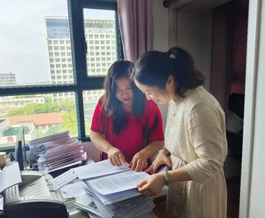 李雅颖查阅了实习带教任务清单、实习教学管理手册及部分教学案例,详细了解了来华职工的实习情况,并就实习教学工作与戴琼进行了沟通和交流。