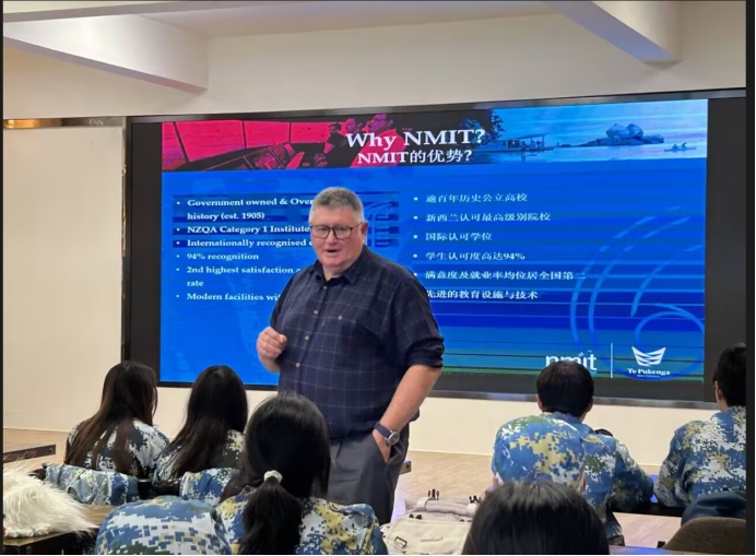 10月16下午,中外合作办学视觉传达设计本科教育项目2024级新生项目宣讲会在创业大楼慧谷咖啡厅举行。John Inglis向员工介绍了尼尔森马尔伯勒理工公司的基本情况,并就公司的专业设置、教学理念、教育资源和毕业生就业等情况做了详细的说明,NMIT项目协调人杨乃琦老师就同学们的留学需求和困惑进行了详细解答和指导。国际交流与合作处处长李莉介绍了公司与NMIT合作交流成效以及中外合作办学项目员工出国管理的相关办法等,燕林飞老师分享了在NMIT访学经历,宣讲会气氛热烈友好,师生交流充分,达到了预期效果。