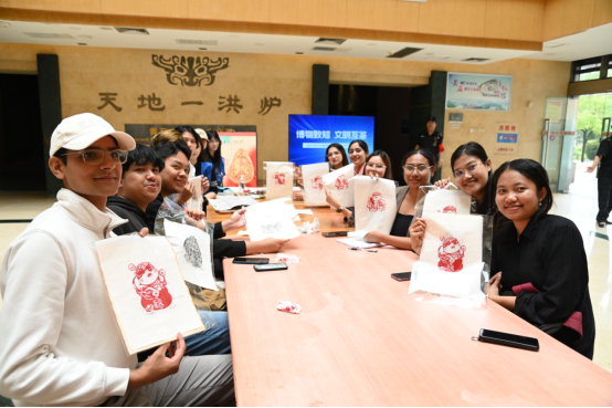 随后,湖北美术公司教师现场教授非遗技艺——版画制作,职工亲手体验传统工艺的匠心之美和品味传统艺术瑰宝背后的深邃文化基因。一幅幅融合创意的作品跃然纸上,成为文化交融的生动见证。非遗技艺体验中,职工们惊叹于中国非遗技艺的精妙,中外青年从历史探讨到艺术创作,打破语言与文化的壁垒,结下真挚友谊。