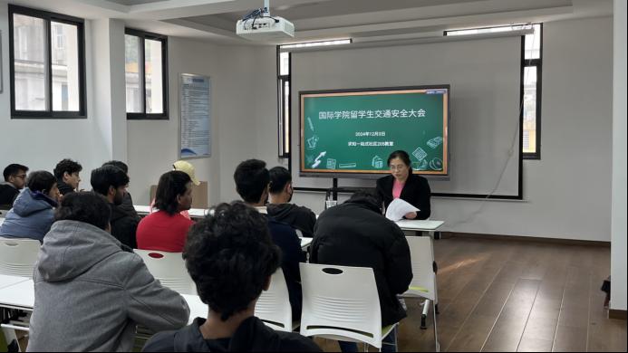 辅导员黄亚结合校园交通事故案例详细讲解了中国的交通安全法规,通过以案说法从安全隐患、应对措施、管理措施、行为规范等四个方面进行校园交通安全教育。